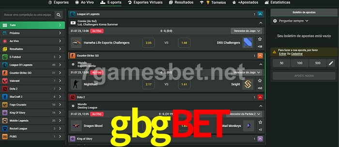 O gbgbet oferece uma grande seleção de opções de apostas em e-sports com probabilidades competitivas